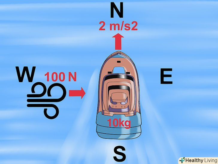 Напрямок сили.Пам'ятайте, що прискорення завжди сонаправлено силі, що діє на тіло. У деяких завданнях даються дані, мета яких полягає в тому, щоб ввести вас в оману.- Приклад: іграшковий човен масою 10 кг рухається на північ з прискоренням 2 м/с2. Вітер, що дме в західному напрямку, діє на човен з силою 100 Н. знайдіть прискорення човна в північному напрямку.