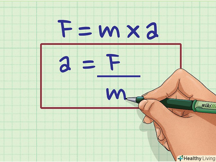 Перетворіть формулу F = ma так, щоб обчислити прискорення. для цього розділіть обидві сторони цієї формули на m (масу) і отримаєте: a = F/m. Таким чином, для знаходження прискорення розділіть силу на масу тіла, що прискорюється.- Сила прямо пропорційна прискоренню, тобто чим більше сила, що діє на тіло, тим швидше воно прискорюється.