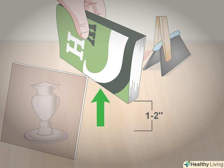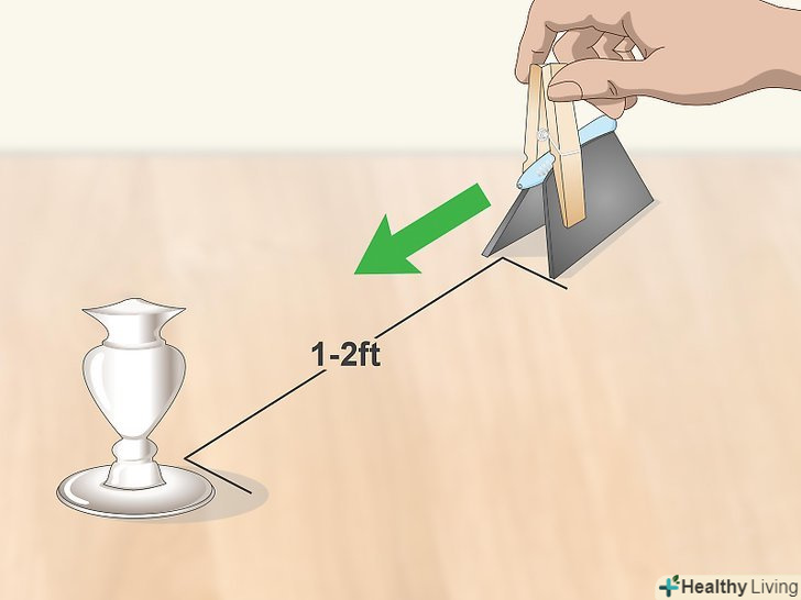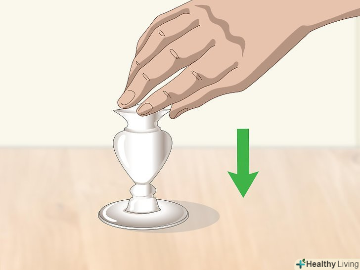 Поставте об'єкт на стійкий стіл.виберіть стіл, який не хитається і не скрипить. Якщо такого столу немає, можна розмістити предмет на рівному бетонному або кахельній підлозі.[3]- Приклейте предмет до дерев'яної або металевої підставки на поверхні столу, якщо ви турбуєтеся, що він може поворухнутися.