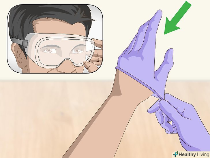 Одягніть захисні окуляри і гумові рукавички.Хімічні реактиви, що входять в набір для обробки голограм, можуть бути токсичними в сухому нерозбавленому вигляді. При роботі з набором використовуйте захисні окуляри і товсті гумові рукавички, щоб захистити очі і шкіру.- Ні в якому разі не торкайтеся до реактивів з набору голими руками і не працюйте з ними без окулярів, інакше велика ймовірність травмувати себе.