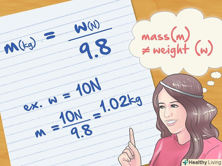 Пам'ятайте про те, що вага і маса – це різні поняття у фізиці.якщо вага об'єкта дана в ньютонах, для знаходження маси його слід розділити на 9,8. Наприклад, 10 н еквівалентні 10/9, 8 = 1,02 кг.