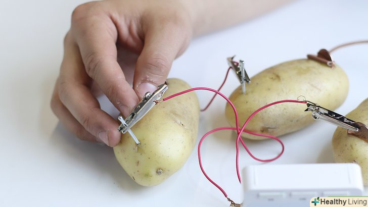 Ідея виробляти електрику з картоплі може здатися вам неймовірною. Проте, отримати електричний струм тільки з декількох картоплин і пари металів різного типу досить просто. Використовувати картопляну батарею можна для того, щоб на нетривалий час живити електронний годинник, виконати будь-якої науковий проект або просто для розваги. Тканини картоплі виробляють електрику завдяки тому, що поділяють собою іони цинку (в цвяху) і іони міді (в мідному дроті або пластині), змушуючи електрони переміщатися від одного металу до іншого, тим самим створюючи електричний струм. Щоб підключити електронний годинник до картопляної батареї, вам буде потрібно взяти дві або більше картоплин.