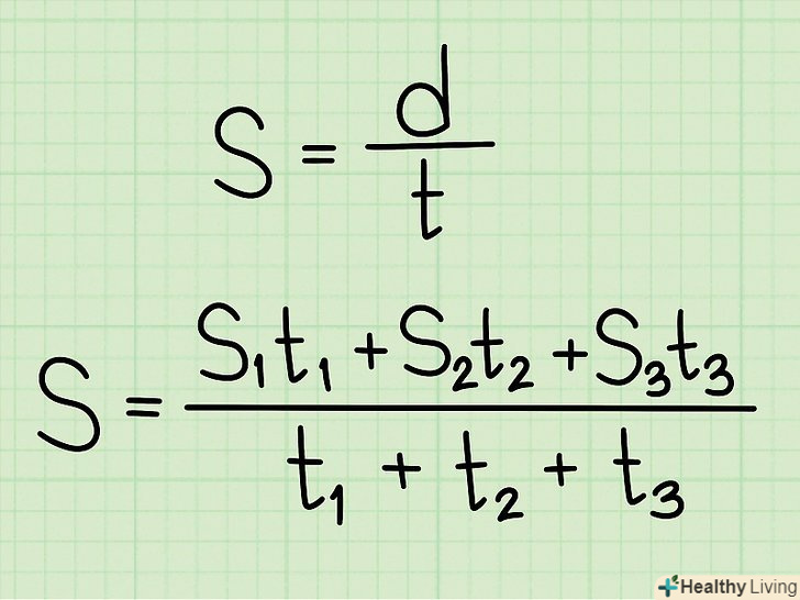 Щоб обчислити середню швидкість, скористайтеся простою формулою:. Але в деяких завданнях даються два значення швидкості - на різних ділянках пройденого шляху або в різні проміжки часу. У цих випадках потрібно користуватися іншими формулами для обчислення середньої швидкості. Навички вирішення подібних завдань можуть стати в нагоді в реальному житті, а самі завдання можуть зустрітися на іспитах, тому запам'ятайте формули і усвідомте принципи вирішення завдань.