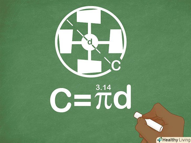 Розрахуйте діаметр.виміряйте відстань від одного краю анемометра до іншого, щоб знайти діаметр обертового кола, d . Окружність кола, дорівнює πd . Це відстань, пройдену за один оборот.- Якщо у вас немає калькулятора, то візьміть за основу число π (3.14) або навіть округлите його до трьох.