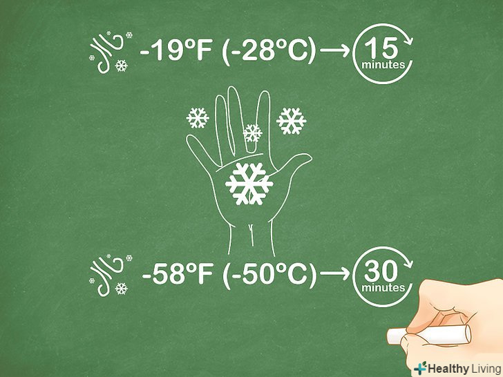Коефіцієнт охолодження вітром визначає втрату тепла тілом на відкритій ділянці шкіри при низьких температурах.в екстремальних умовах, це може бути важливим фактором, що визначає, як скоро настане обмороження тіла. Якщо температура охолодження вітром - 19ºf (- 28ºc), то обмороження на відкритих ділянках шкіри настане протягом 15 хвилин або менше.[9] якщо температура-58ºF (- 50ºC), то обмороження на відкритих ділянках шкіри настане протягом 30 секунд.[10]