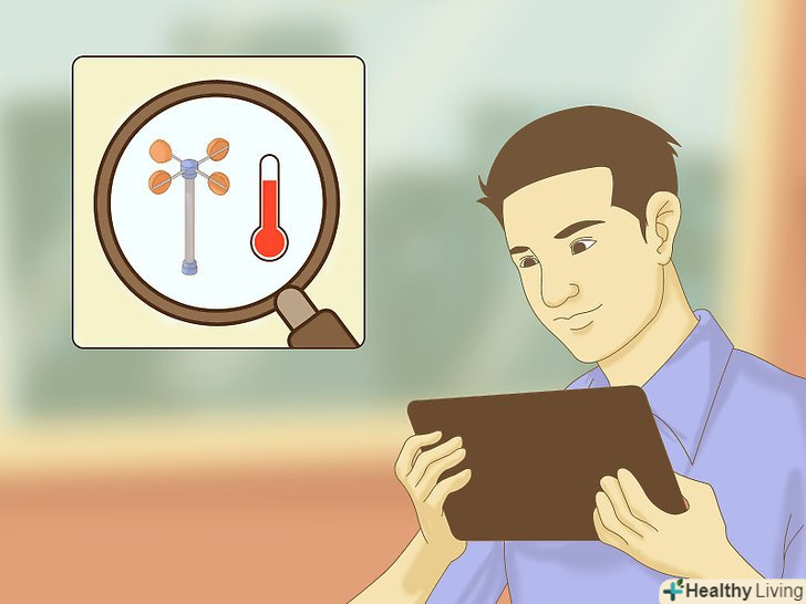 Виміряйте температуруt .використовуйте термометр або подивіться температуру повітря вашого регіону на веб-сайті прогнозу погоди. Ви можете виміряти температуру в Фаренгейтах або Цельсіях. Для вимірювання швидкості вітру прочитайте уважно наступний крок, щоб дізнатися, який пристрій потрібно використовувати.- Коефіцієнт охолодження під впливом вітру не визначений для температур нижче 50ºf (10ºC).[1] якщо температура повітря висока, то вітер не робить істотного впливу на неї.
