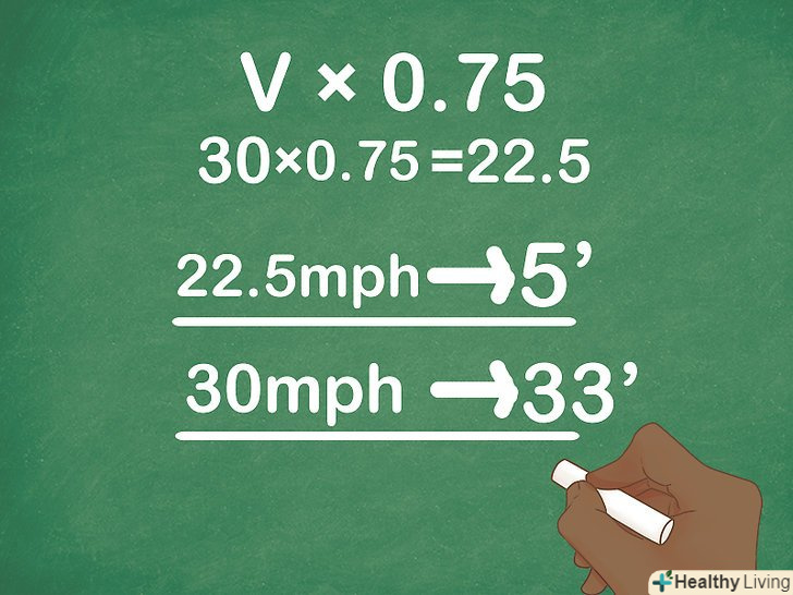 Помножте показник швидкості вітру на 0.75 .оскільки відповідно до прогнозу погоди швидкість вітру визначається на рівні землі, то потрібно помножити швидкість вітру на 0,75, щоб отримати більш точний показник швидкості вітру відповідний рівню людського обличчя.- Цей розрахунок заснований на стандартній висоті вимірювання швидкості вітру в 10 м і типових атмосферних умовах.[11] використання швидкості вітру, виміряного на висоті 5 футів (1,5 м), є найбільш точним, але, як правило, воно не можливе без власного анемометра.