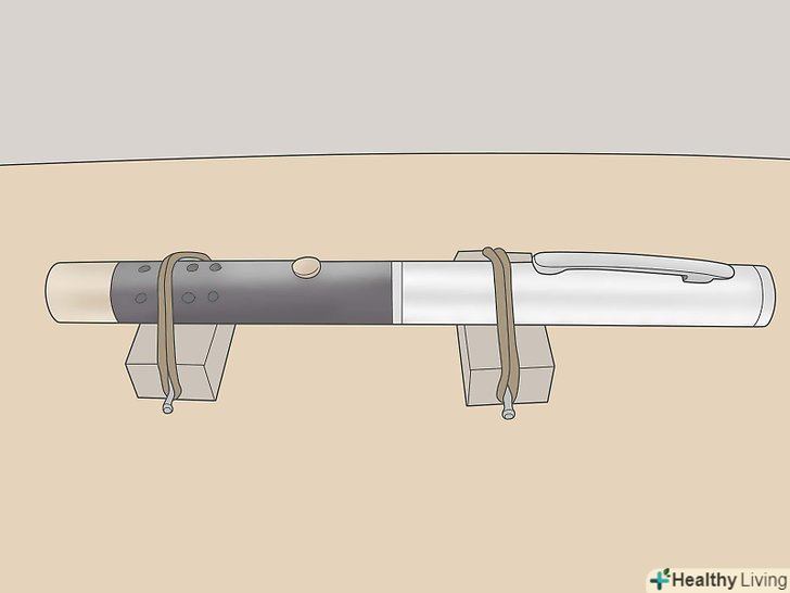 Приготуйте фокусуючу лінзу.вам доведеться пропустити промінь від діода через фокусуючу лінзу, щоб використовувати його в якості лазера. Ви можете зробити це одним з двох способів:- Використання збільшувального скла як фокусуючої лінзи. Обертайте лінзу так щоб знайти потрібне місце для отримання сфокусованого лазерного променя. При необхідності це доведеться робити кожен раз перед використанням лазера.