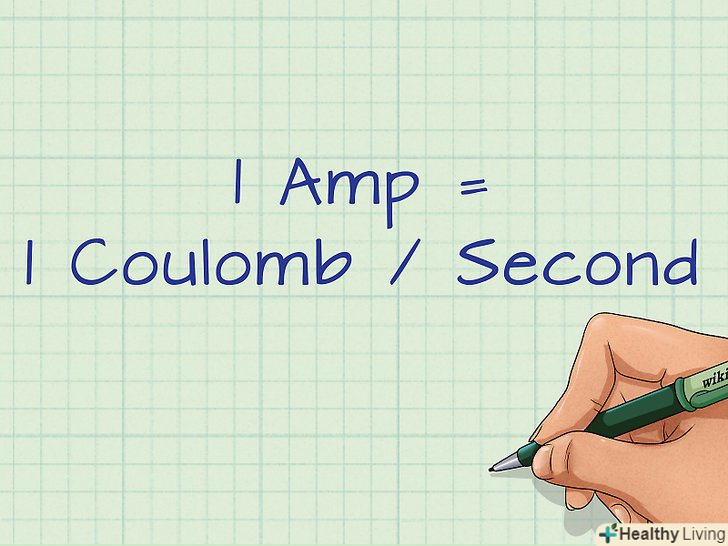 Знайдіть силу струму.записавши рівняння, Ви зможете знайти кількість ампер. Для цього виконайте поділ. Перевірте одиниці виміру: в результаті у вас повинні вийти Кулони, поділені на секунду. 1 ампер = 1 кулон / секунду.[7]- У міжнародній системі одиниць (СІ) Кулони служать одиницею вимірювання електричного заряду. При цьому один ампер відповідає заряду величиною один кулон, що протік через перетин провідника за одну секунду.