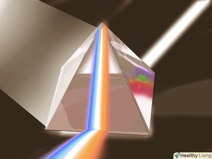 Пропустіть світло через призму.переконайтеся, що світло безперешкодно потрапляє на призму. При проходженні через призму відбудеться заломлення світла, і він розщепиться на веселку. Веселка буде краще видно, якщо направити призму на білу стіну або аркуш білого паперу.[3]