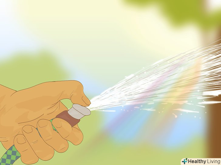 Знайдіть джерело води.зазвичай Веселка виникає під час або після дощу. Це пояснюється тим, що в дощову погоду в повітрі присутня безліч водяних крапель, які заломлюють сонячне світло. Щоб створити схожі умови, необхідно знайти рухливий джерело води. Добре підійде садовий шланг або пульверизатор.[4]
