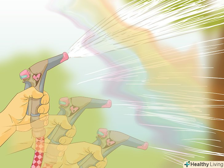 Створіть туман.потік води не дуже добре підходить для того, щоб спостерігати веселку. Замість цього постарайтеся розпорошити воду в повітрі, щоб через неї проходило сонячне світло. Наприклад, можна затиснути кінець садового шланга великим пальцем або переключити насадку на шлангу в режим «туману».[5]