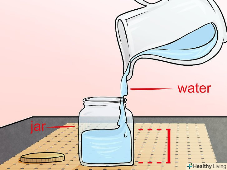 Налийте в банку воду.заповніть банку водою приблизно до половини.- Банку повинна бути досить великою, щоб в неї проходила лінійка.