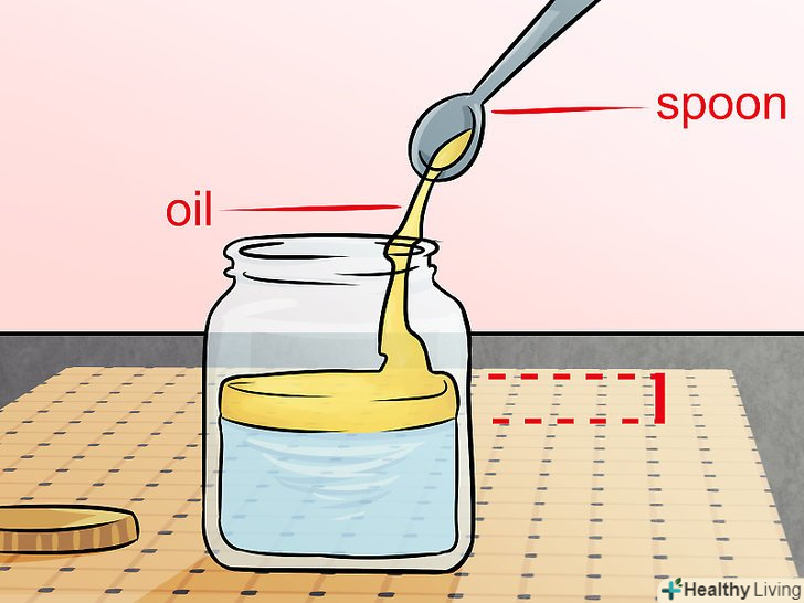 За допомогою ложки акуратно налийте в банку рослинне масло.в результаті поверх води утворюється шар масла.