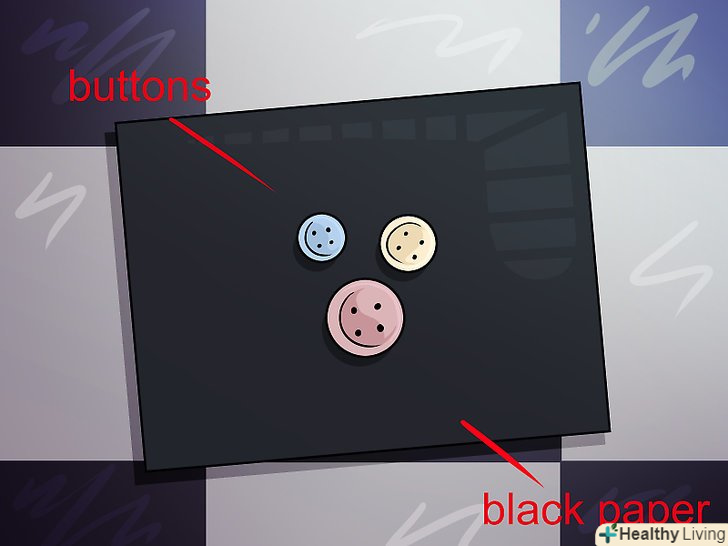 Розмістіть дрібні предмети на чорному папері.покладіть аркуш чорного паперу на підлогу в слабо освітленій або повністю затемненій кімнаті. Розмістіть в центрі листа 2-3 дрібних предмета.