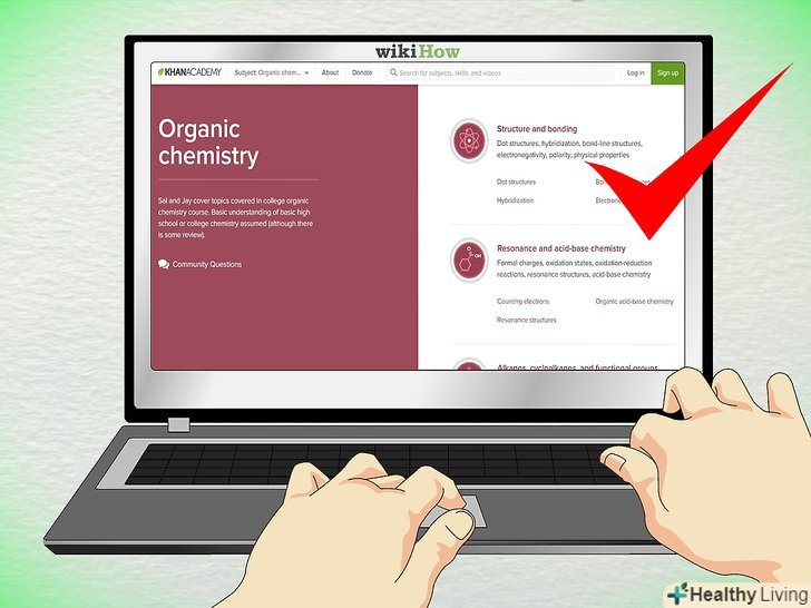 Скористайтеся інформацією інтернет-ресурсів про органічну хімію.є багато сайтів, присвячених цій темі. Нижче ми наводимо список таких ресурсів (англійською мовою):- Khan Academy: тут зібрані відеозаписи лекцій на найрізноманітніші теми.[8]