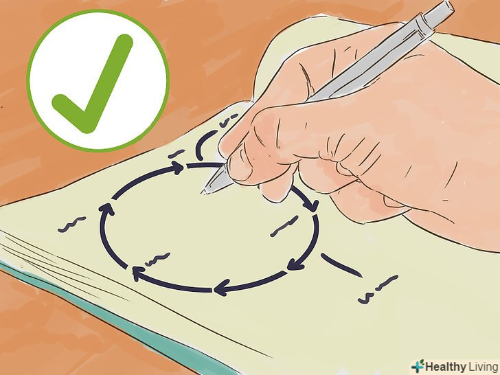 Накресліть основний шлях.починайте з вивчення основного метаболічного шляху. Деякі шляхи являють собою повторювані цикли (цикл трикарбонових кислот), інші мають вигляд лінійного процесу (гліколіз).[13] для початку запам'ятовуйте форму шляху, де він починається, які речовини при цьому розпадаються і які синтезуються.- На початку кожного циклу є вихідні молекули, такі як нікотинамідаденіндинуклеотид, аденозиндифосфат (АДФ) або глюкоза, і кінцеві продукти, наприклад аденозинтрифосфат або глікоген. В першу чергу запам'ятайте вихідні речовини і кінцеві продукти.