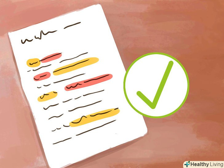 Позначте свої записи різними кольорами. біохімії є безліч складних процесів. Розробіть для своїх записів систему кольорів. Наприклад, можна відзначати одним кольором складний матеріал, а інший колір використовувати для простого і зрозумілого Вам матеріалу.- Використовуйте відповідну вам систему. Чи не переписуйте бездумно конспект свого друга — так ви не досягнете кращого розуміння матеріалу.