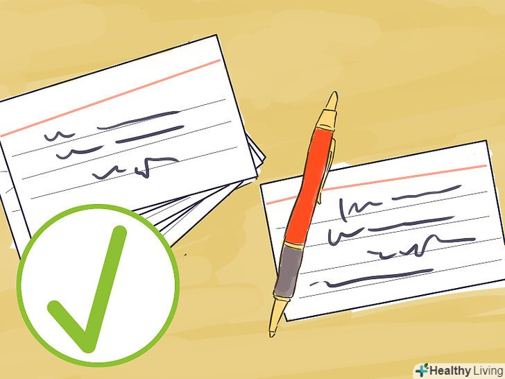 Зробіть картки.[19] в біохімії є безліч спеціальних термінів, з якими ви могли не стикатися раніше. Вивчіть основні терміни на початку курсу, щоб потім краще розуміти базуються на них більш складні ідеї та концепції.- Зробіть картки з новими термінами в паперовому або електронному вигляді. В останньому випадку ви зможете записати їх на свій мобільний телефон.