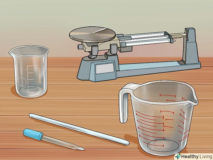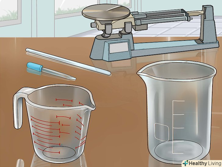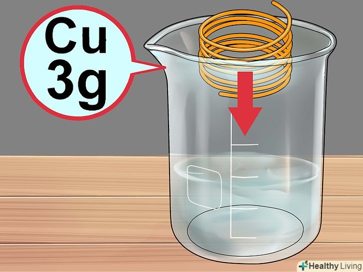 Зберіть необхідні інструменти.для експерименту вам знадобляться скляний хімічний стакан або гуртка і мензурка з міліметровою шкалою або скляна піпетка. Може знадобитися також скляна паличка або лопатка для того, щоб дістати з розчину зайві шматочки міді, і ваги для зважування металу.- Не використовуйте металеву або пластикову посуд, оскільки вона вступить в реакцію з кислотою.