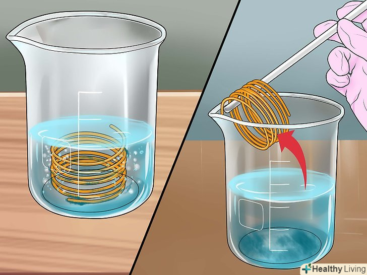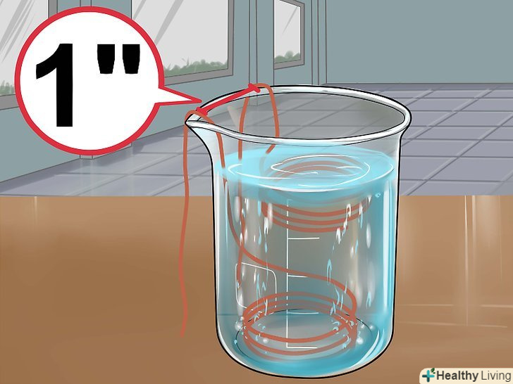 Занурте в розчин дві зволікання так, щоб вони не торкалися один одного.зволікання повинні знаходитися на відстані близько 2,5 сантиметра один від одного (в залежності від розмірів ємності). Слідкуйте, щоб вони не стикалися.[16]