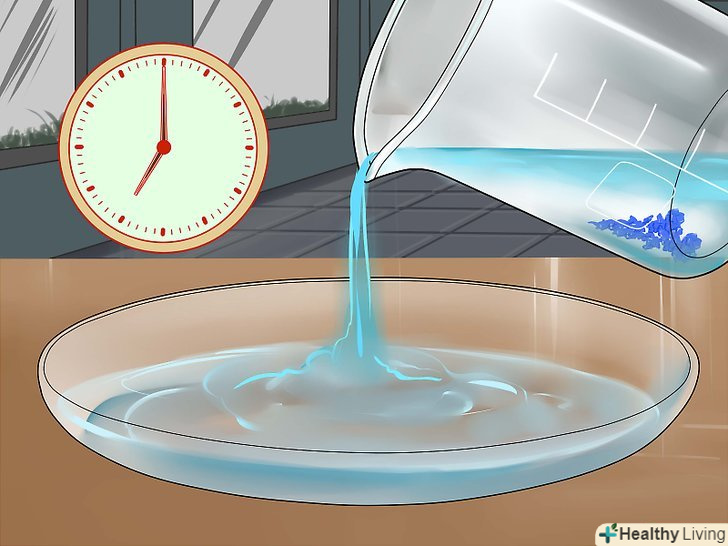 Випаруйте рідину.якщо ви хочете отримати сульфат міді в кристалічній формі, перелийте розчин в неглибоке скляне блюдце і залиште на повітрі на кілька днів, щоб з нього випарувалася рідина. При цьому пам'ятайте про те, що розчин зберігає свої їдкі властивості, і звертайтеся з ним обережно.[13] після цього Ви зможете використовувати кристали сульфату міді для різних експериментів, або виростити більші кристали.[14]