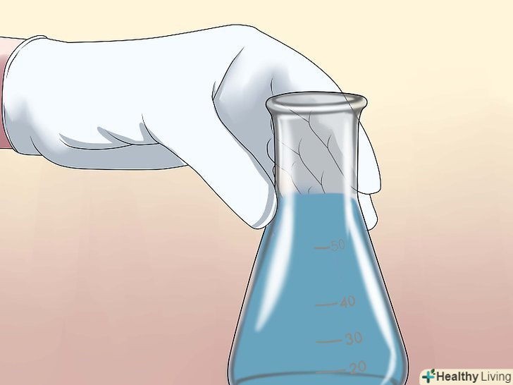Злегка розмішайте рідину скляною паличкою.не слід перемішувати кислоту занадто сильно, інакше вона може бризнути вам на шкіру. Перемішуйте її протягом приблизно 30 секунд кожен раз після додавання чергової порції оксиду міді.[7]