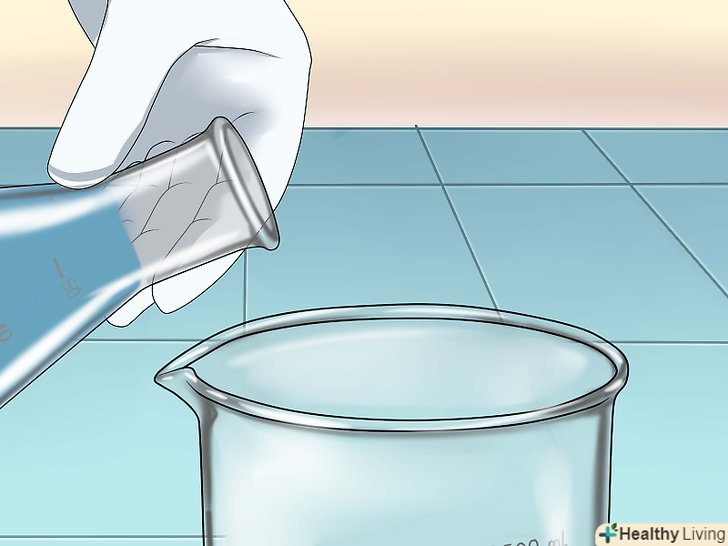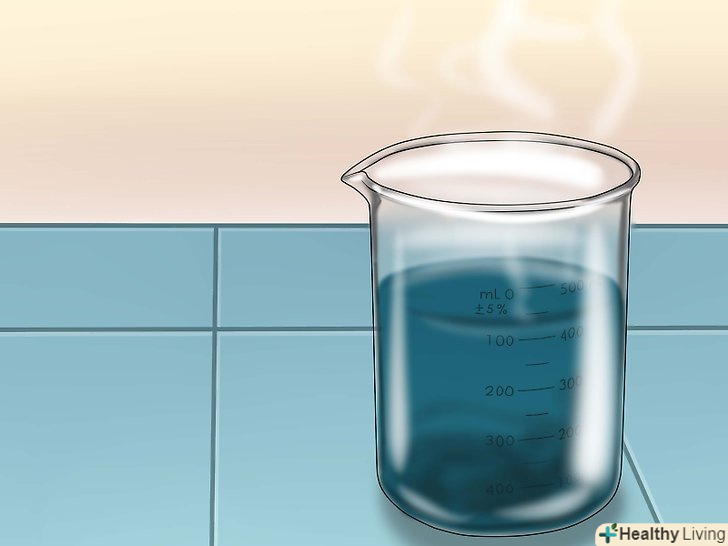 Залийте прозорий синій розчин у склянку.Будьте при цьому обережні і не обпечіться, оскільки розчин може бути ще гарячим.