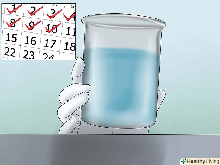 Зачекайте, поки розчин просочиться крізь фільтрувальний папір.в результаті в колбі повинна виявитися прозора синя рідина. Якщо рідина буде каламутною і з чорною суспензією, повторюйте процес фільтрування до тих пір, поки вона не очиститься.[15]