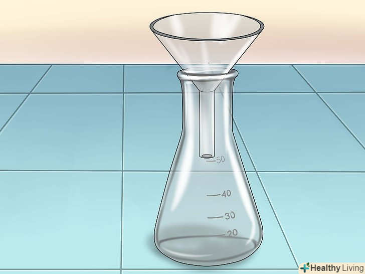 Струсіть розчин, обережно здійснюючи склянкою кругові рухи.після цього акуратно перелийте рідину в фільтрувальну воронку.[14]