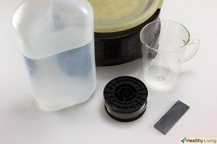 Підготуйте все необхідне.для виробництва нітрату срібла вам знадобиться витяжна шафа або робоче місце зовні будинку, концентрована азотна кислота (70 %), чиста скляна ємність, шматок чистого срібла, алюмінієвий дріт і нагрівальна плита. Розмір скляної ємності і необхідну кількість азотної кислоти і срібла залежать від того, скільки нітрату срібла ви намагаєтеся отримати. Пари, що виділяються в ході хімічної реакції, надзвичайно токсичні, тому робоча зона повинна добре провітрюватися.[3]- Азотну кислоту можна придбати в магазині хімічних реактивів.