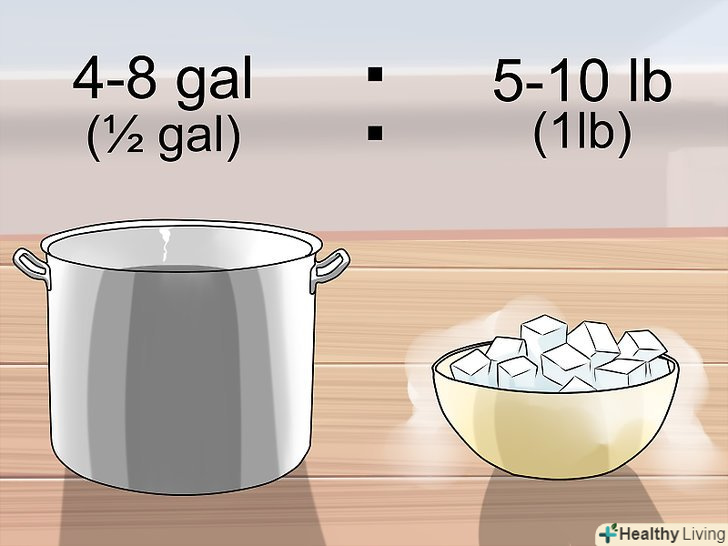 Відміряйте необхідну кількість води і сухого льоду.це дозволить вам отримати більш ефектний туман. Щоб створити густий туман протягом 15 хвилин, візьміть приблизно 2-4, 5 кілограма сухого льоду на 15-30 літрів гарячої води.[14]- Для створення туману найкраще дотримуватися співвідношення приблизно 1 кілограм сухого льоду на 8 літрів гарячої води.[15]