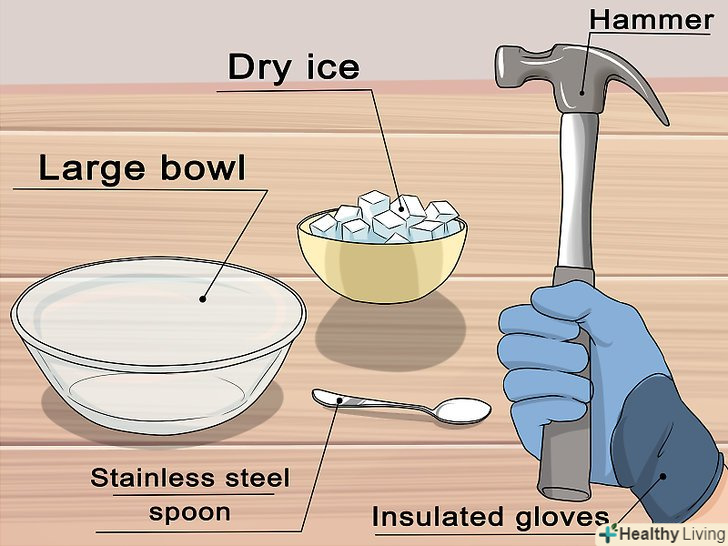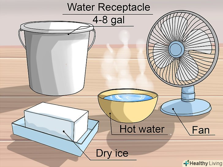 Зберіть все необхідне.хоча сухий лід створює туман при кімнатній температурі, для більшого ефекту потрібна певна підготовка. Сухий лід можна замовити через Інтернет.[11] щоб отримати густий і ефектний туман, який викличе захват глядачів, вам знадобиться наступне:- Сухий лід;
