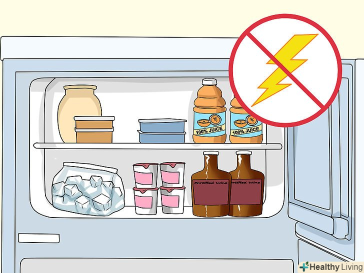 Не дайте продуктам зіпсуватися при відключенні електроенергії.якщо у вас пропала електроенергія, а морозильна камера заповнена продуктами, їх можна врятувати за допомогою сухого льоду.[6][7] однак не слід зберігати сухий лід в стандартній працюючій морозильній камері. Термостат морозильної камери не розрахований на таку низьку температуру, при якій знаходиться сухий лід.