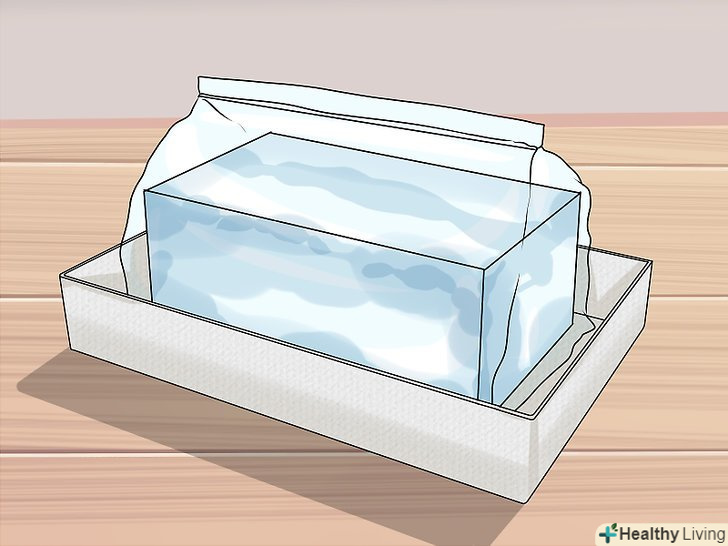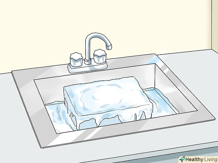 Кладіть сухий лід на поверхню, здатну витримати дуже низькі температури.поверхня столу та інших меблів не зовсім підходить для цих цілей, оскільки може потріскатися. Якщо ви використовуєте сухий лід в якості тимчасової заміни зламався холодильника, досить невеликого шматочка льоду, який не заподіє шкоди.[8]- Загорніть сухий лід в газету, щоб він не так швидко випаровувався під впливом свіжого повітря.[9]