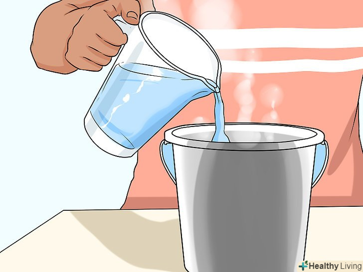 Підготуйте ємність.у поєднанні з гарячою водопровідною водою сухий лід дасть густий, сланкий туман. Якщо використовувати холодну воду або охолодити її сухим льодом, туман вийде менш густим і насиченим, тому залийте в ємність якомога більш гарячу воду.- Хоча немає ніякої необхідності доводити воду до кипіння, чим гаряче вона буде, тим густіше і більш насиченим вийде туман.