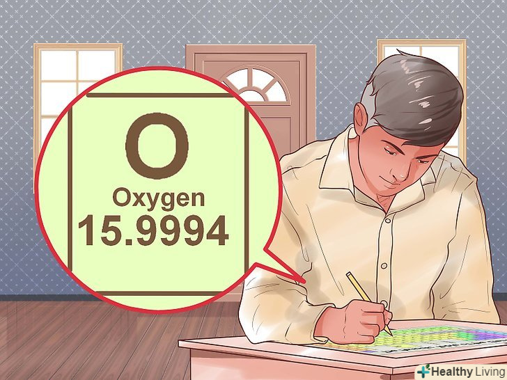 Запишіть атомну вагу кожного елемента.найлегше дізнатися атомну вагу елементів по таблиці Менделєєва. Розшукайте потрібний елемент в періодичній таблиці. Як правило, атомна вага елемента вказується під його символом.- Наприклад, атомна вага кисню становить 15,99.