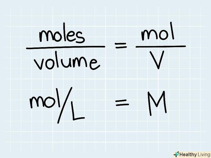 Ознайомтеся з поняттям концентрації.концентрація будь-якої речовини відповідає числу частинок цієї речовини, присутніх в розчині.[6] як правило, концентрація виражається в кількості молей на одиницю об'єму і позначається як m/V, або M. у хімічних лабораторіях концентрації розчинів пишуть на пляшках з ними. Якщо ви вирішуєте хімічну задачу, концентрація може бути дана в умові, або її потрібно знайти.