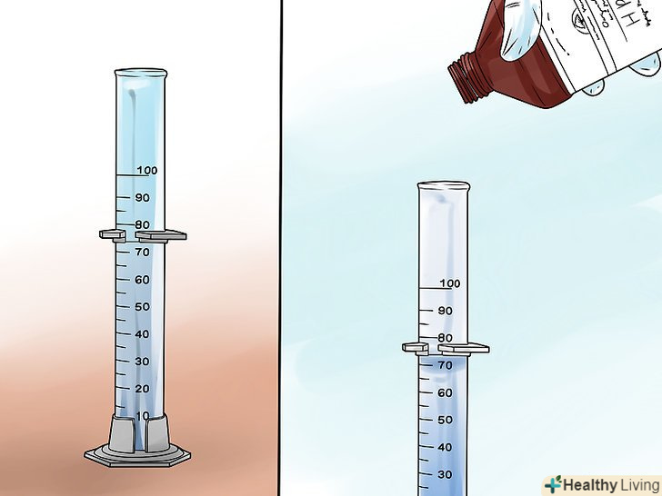 Налийте 50 мілілітрів 30% перекису водню в мірний циліндр об'ємом 1 літр.[10] такий розчин набагато сильніше побутової перекису. Дійте обережно і ставте мірний циліндр тільки на стійку поверхню.