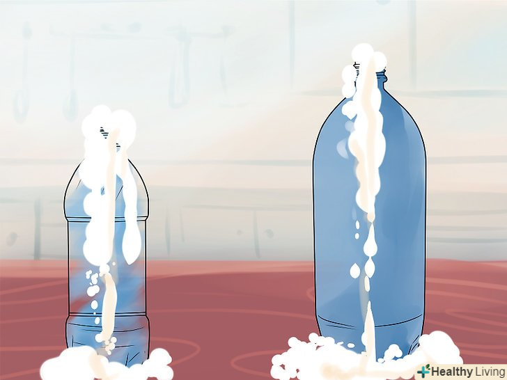 Використовуйте пляшки різної форми і розміру.маленькі пляшки з вузькою шийкою дозволять отримати швидке виверження піни. Експериментуйте з різними формами і розмірами пляшок.[7]- Звичайна пляшка з-під газованої води і 3% розчин перекису водню дозволять отримати ефект каскаду фонтанів.