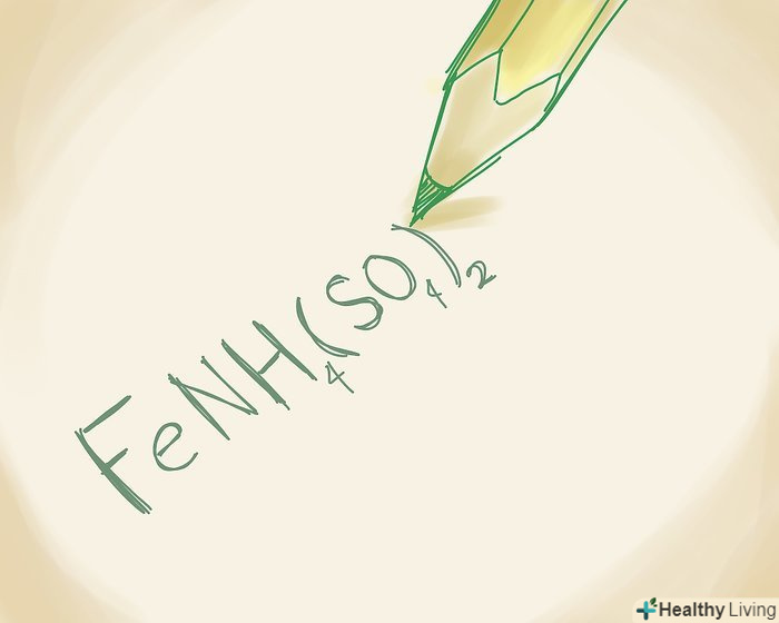 Запишіть формулу багатоатомного іона.це з'єднання буде мати в своєму складі більше двох елементів. Припустимо, ви працюєте з наступним з'єднанням: FeNH4(SO4)2.[3]