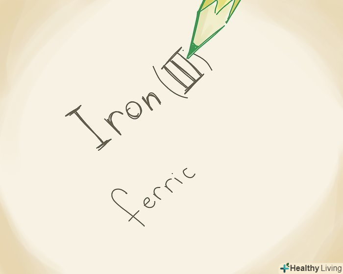 Напишіть назву неметалла. оскільки ви знаєте, щоFe – це залізо, і що його заряд дорівнює 2, ви можете назвати йогозалізо (II) . Запам'ятайте, що при написанні назви потрібно використовувати римські цифри, а не цифри з формули.