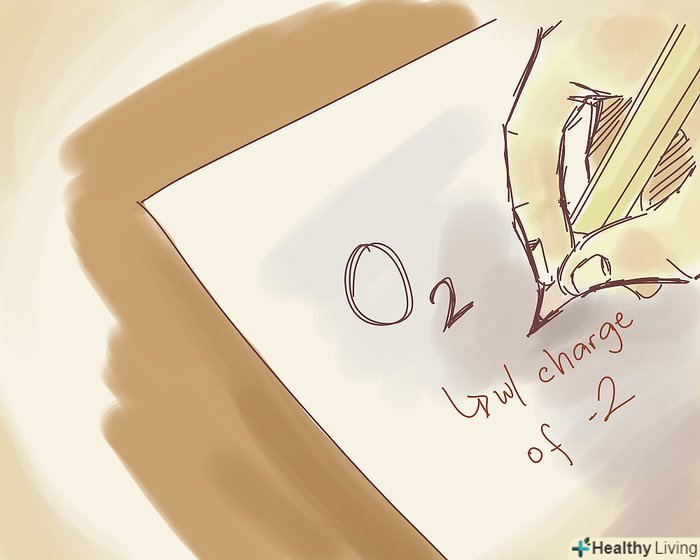 Запишіть заряд металу. Ви знаєте, що у металів заряд завжди позитивний, тому викресліть 3 з O3і напишіть, що FE має заряд +3. Для інтересу, зробіть зворотну операцію і запишіть, що O має заряд -2. Іноді заряд буде обговорюватися в завданні.