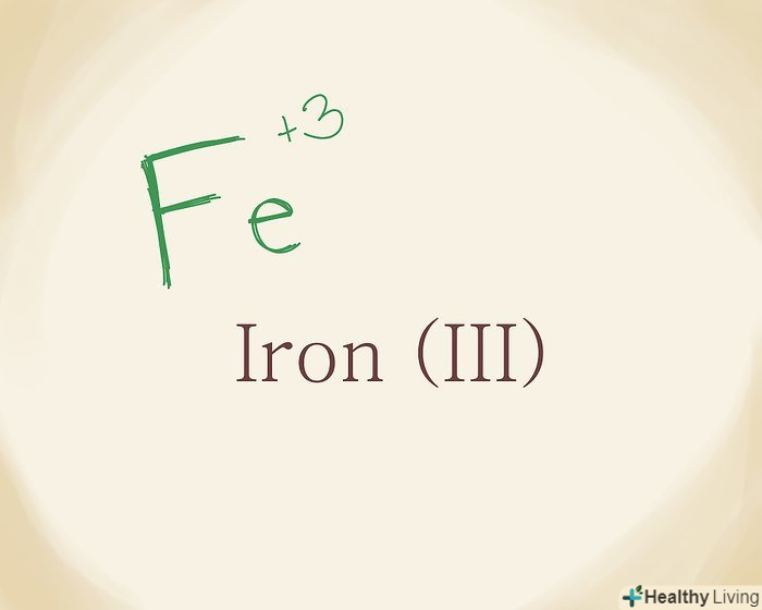 Запишіть формулу іонного з'єднання.метали змінної валентності знаходяться в центрі довгоперіодної форми таблиці Менделєєва або в побічних підгрупах короткоперіодної. Вони отримали свою назву через те, що їх ступінь окислення, або заряди, можуть змінюватися. Припустимо, ви маєте справу з наступним з'єднанням: Fe2O3.[2]