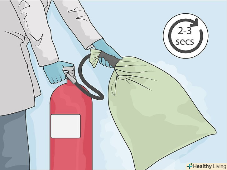 Запустіть вогнегасник.коли ви будете готові, натисніть на важіль і дайте газу наповнити наволочку. Продовжуйте випускати газ 2-3 секунди. Можливо, ви не побачите, як утворюється лід, але незабаром він почне збиратися на дні. Відпустіть важіль через кілька секунд. Пари двоокису вуглецю будуть просочуватися крізь тканину наволочки. Але це не страшно і безпечно. Тим не менш, рекомендується проводити цей досвід в добре провітрюваних приміщеннях.- Якщо ви не можете запустити вогнегасник, перевірте запобіжну чеку, вона повинна бути видалена перед початком роботи з вогнегасником.