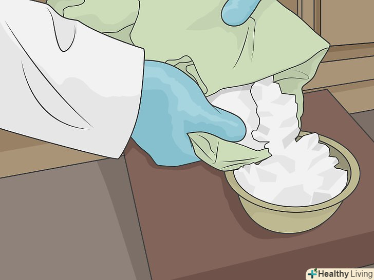 Зніміть наволочку з вогнегасника.акуратно дістаньте розтруб вогнегасника з наволочки. Щільно притискайте тканину до розтрубу, щоб видалити залишки примерзлого льоду. На дні наволочки ви побачите купу пухкого сухого льоду, що нагадує пінопласт.- Намагайтеся тримати мішок вертикально і не робіть льоду більше, ніж вам необхідно. Якщо ви наділи захисні рукавички, ви, звичайно, можете помацати лід, але не довше декількох секунд, інакше ви можете обморозити пальці навіть через рукавички, якщо будете торкатися до льоду занадто довго.