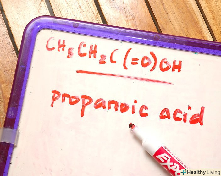 Навчіться давати назви карбоновим кислотам. Карбон ова кислота - це вуглеводневий ланцюг, з останнім/першим вуглецем якої пов'язані подвійним зв'язком кисень і гідроксильна група. Використовувати суфікс -ановая кислота. Номер вуглецю вказувати не потрібно.