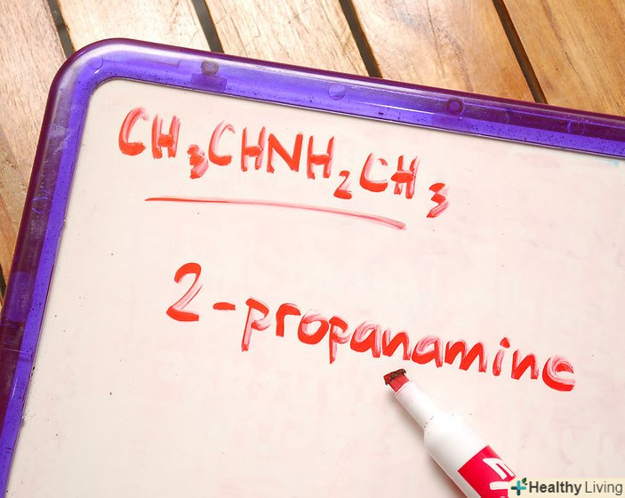Навчіться давати назви амінам.Амін – це вуглеводневий ланцюг зі зв'язаною з нею групою NH2 . Використовуйте суфікс- Амін і, при необхідності, номер вуглецю, до якого приєднана група.