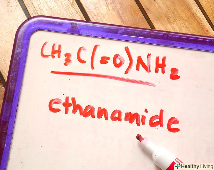Навчіться давати назви амідам. Амід являє собою вуглеводневу ланцюг з NH2 і киснем, пов'язаними з останнім/першим вуглецем. Використовуйте суфікс- амід (номер вуглецю вказувати не потрібно).