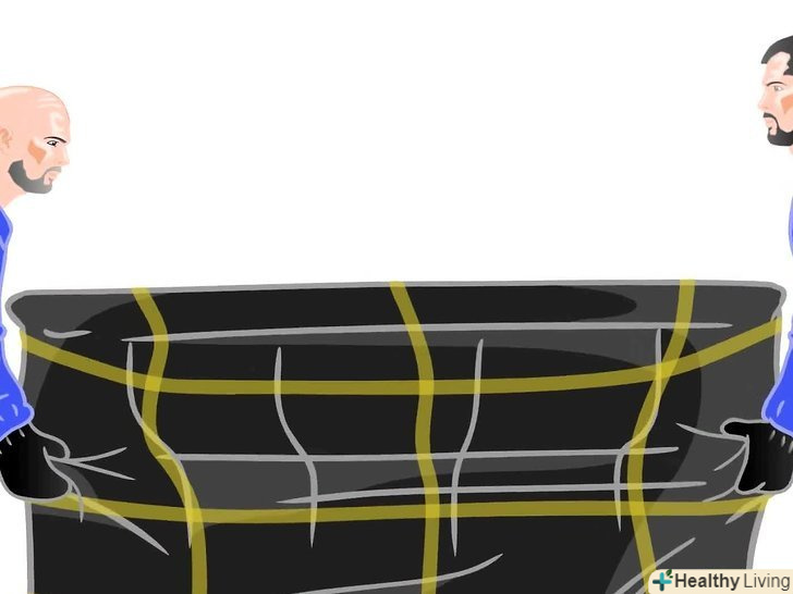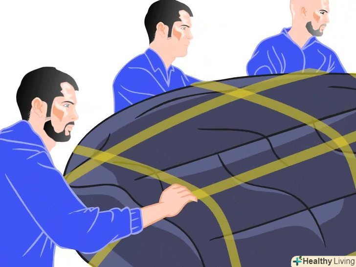 Ставте його дуже акуратно.навіть якщо ви ставите його на дошку або на підставку, можливо вам буде потрібно його повернути або розгорнути, щоб ви могли увійти в кут. Поворот можуть зробити кілька сильних чоловіків. Переконайтеся, що у них достатньо місця, і що вони можуть впевнено стояти на ногах.